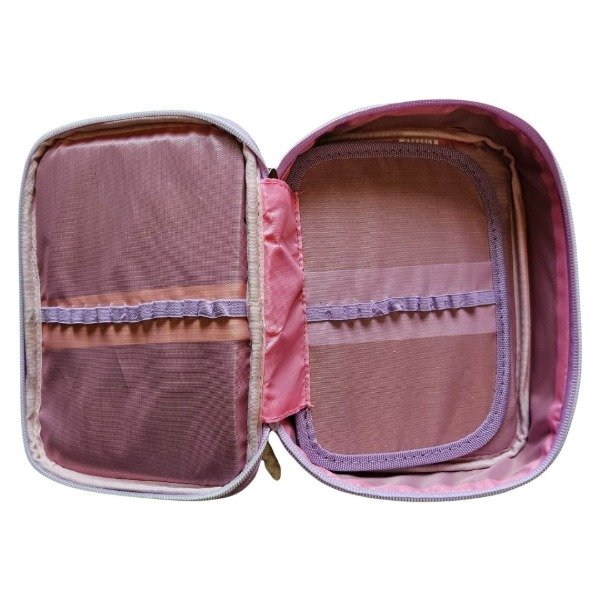 Esta cartuchera cuenta con un amplio espacio de fondo para guardar esas cosas que nunca nos entran: voligoma, tijera, sacapuntas... Tiene una super capacidad para guardar muchas muchas cosas!