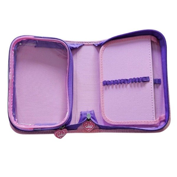Esta cartuchera cuenta con un amplio sobre transparente para guardar esas cosas que nunca nos entran en ningún lado: voligoma, tijera, sacapuntas... Tiene una super capacidad para guardar muchas muchas cosas!