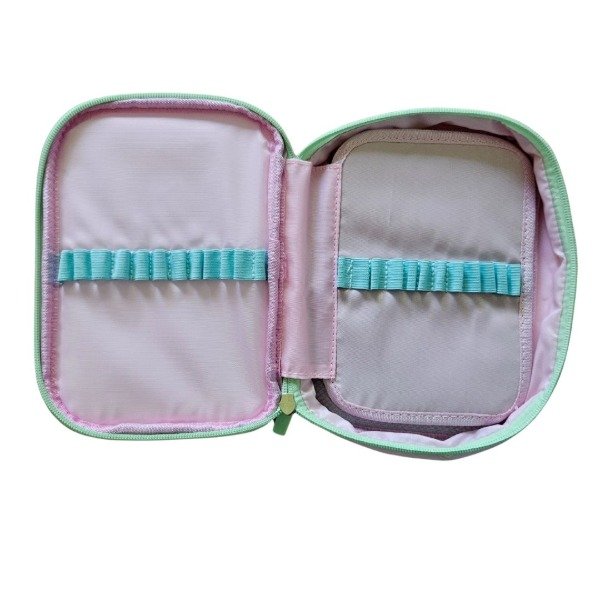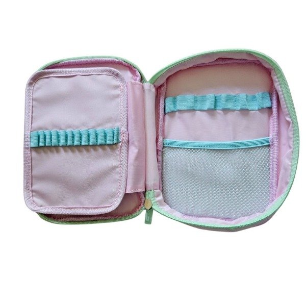 Gracias a su solapa que incluye 12 elásticos a cada lado, tus lápices y demás colores estarán siempre a mano y en su lugar.