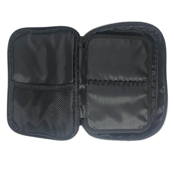 Esta cartuchera cuenta con un bolsillo delantero y un amplio espacio de fondo para guardar esas cosas que nunca nos entran: voligoma, tijera, sacapuntas... Tiene una super capacidad para guardar muchas muchas cosas!