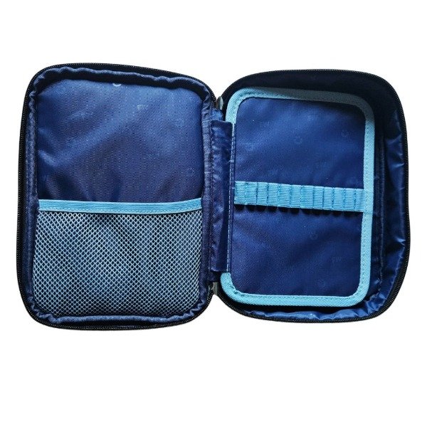 Esta cartuchera cuenta con un bolsillo delantero y un amplio espacio de fondo para guardar esas cosas que nunca nos entran: voligoma, tijera, sacapuntas... Tiene una super capacidad para guardar muchas muchas cosas!