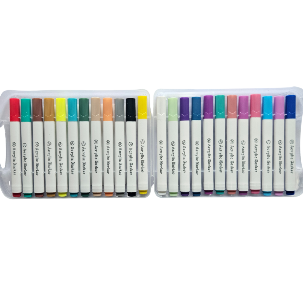 Los marcadores acrílicos son ideales para escribir, dibujar o decorar sobre papel, cartón, madera, piedra, plástico o vidrio.