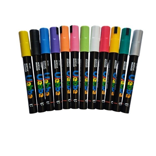 Los marcadores acrílicos son ideales para escribir, dibujar o decorar sobre papel, cartón, madera, piedra, plástico o vidrio.