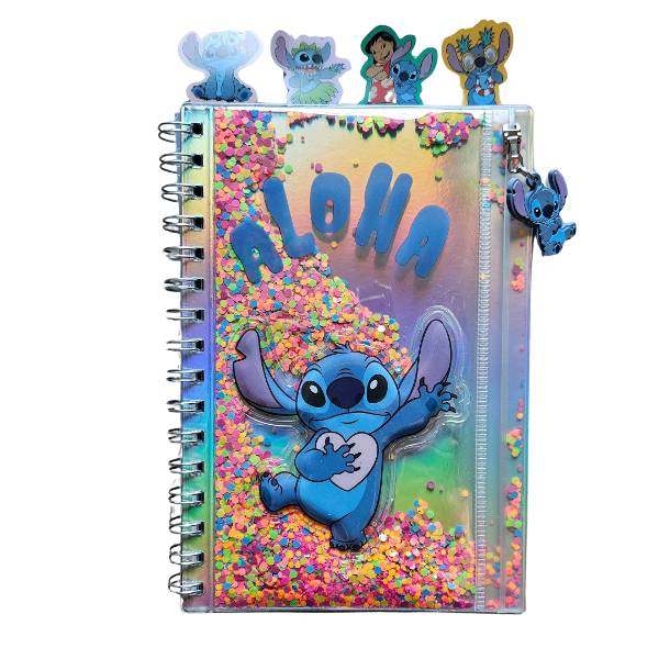 Cuaderno Stitch “Aloha” con Brillos y Separadores – Edición Especial