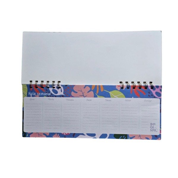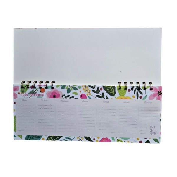 Este planner semanal apaisado y con espiral es perfecto para planificar tu semana de forma visual, práctica y creativa. Con ilustraciones coloridas y agradables, te va a ayudar a organizar tareas, eventos, objetivos o rutinas ¡sin perder el buen humor! 🌈💕