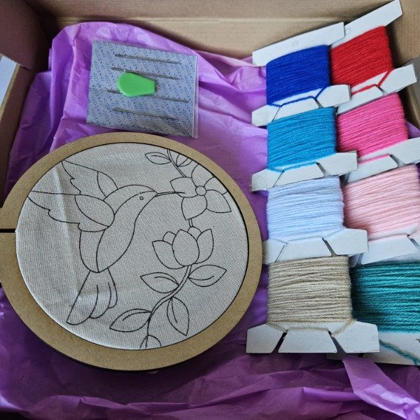 ¡Un plan relajante y creativo para vos! Este kit de bordado incluye todo lo que necesitás para crear un diseño adorable.